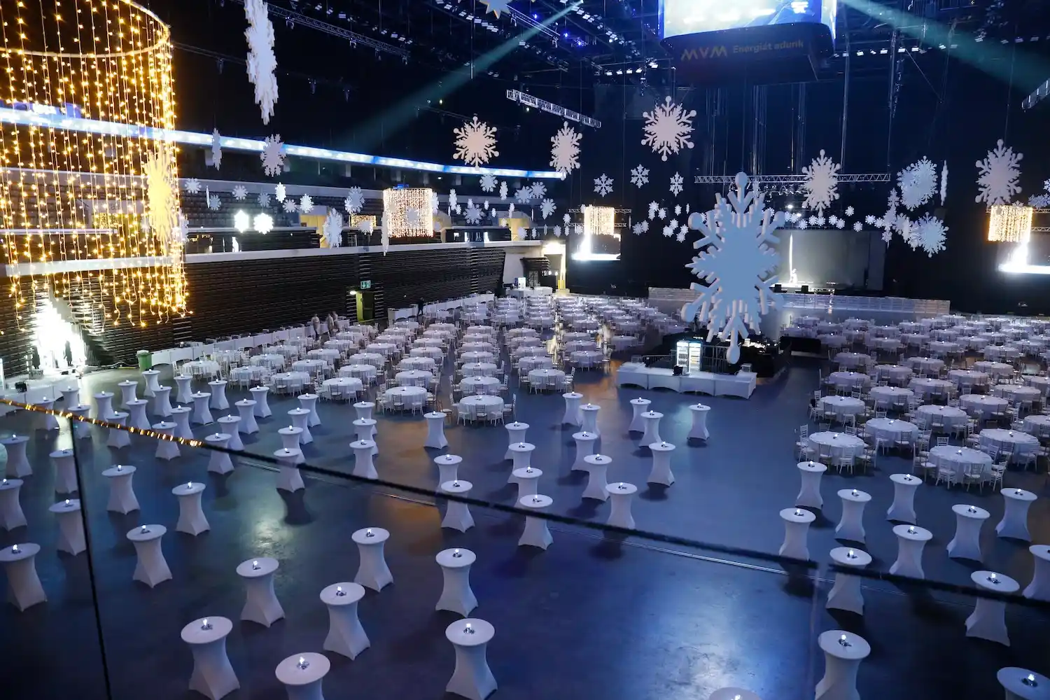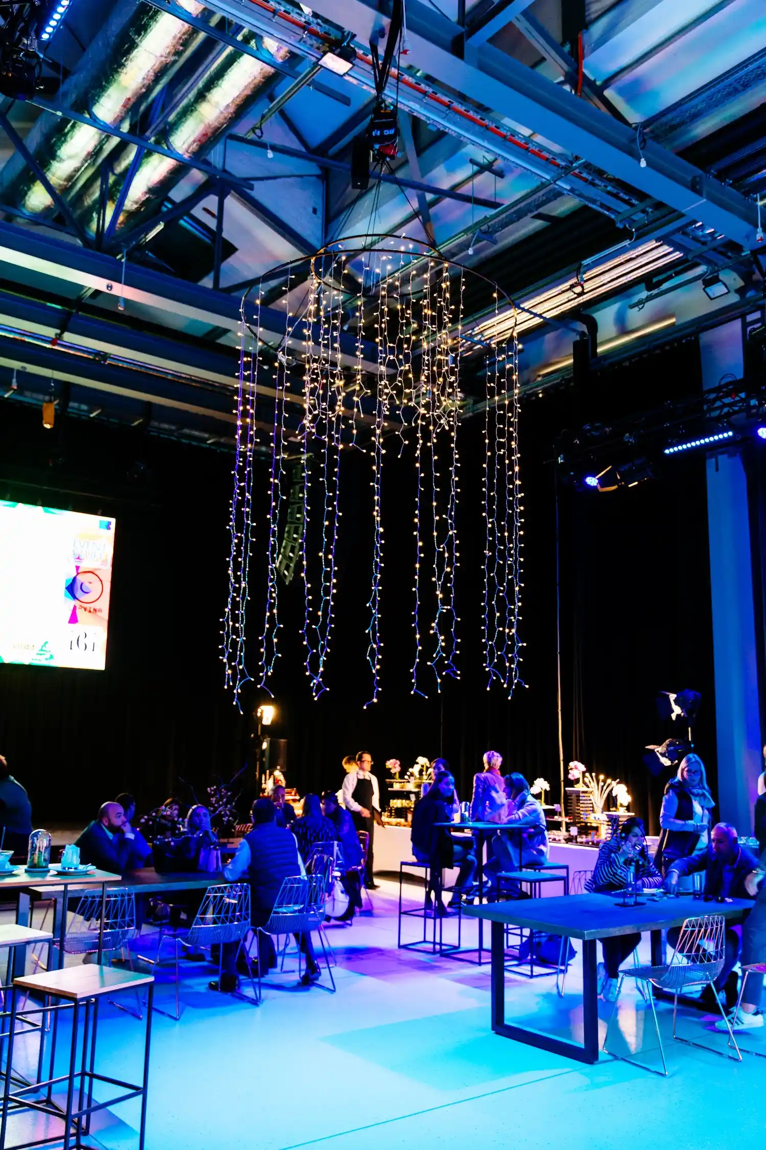 Icicle chandeliers, which can be suspended from the ceiling, are an essential feature for elegant events. These versatile lighting elements can be assembled in various configurations, creating a captivating light display through concentric, interlocking components of different diameters.