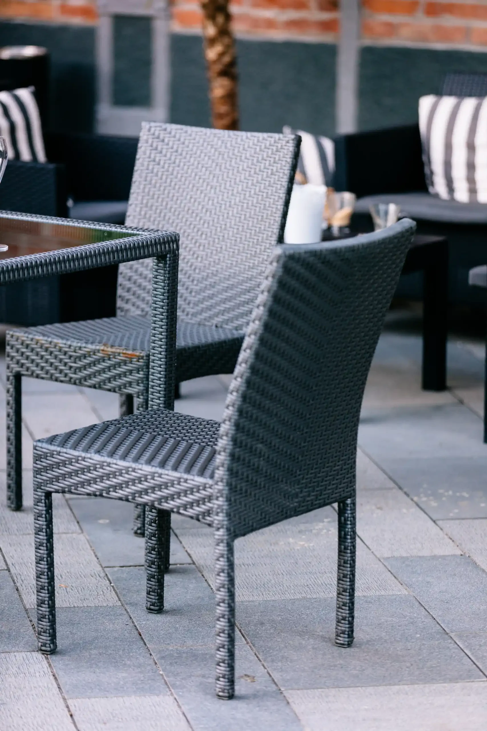 Kerti rendezvények, nyári események kültéri garnitúrája, 4 fotelből és 1 dekorlapos asztalból áll.